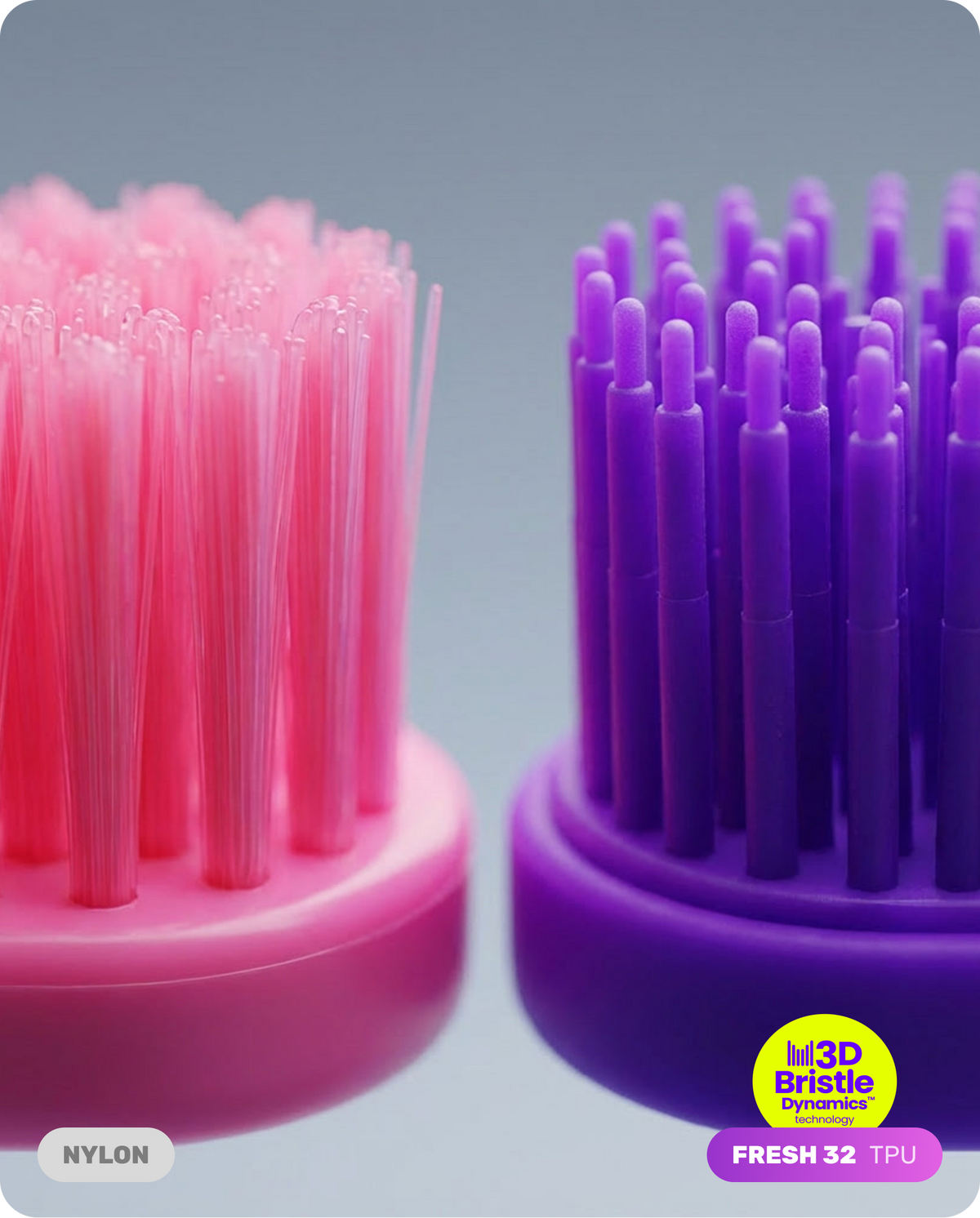 Discover how advanced FRESH 32 TPU bristles outperform outdated nylon on regular toothbrush, delivering a deeper clean, gentler care, and zero waste.