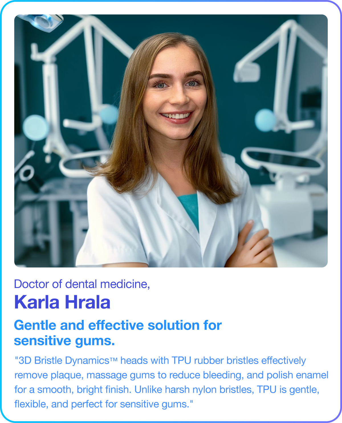 TPU bristles are precision-rounded and naturally soft, which means no sharp edges and no micro-tears in your gums.