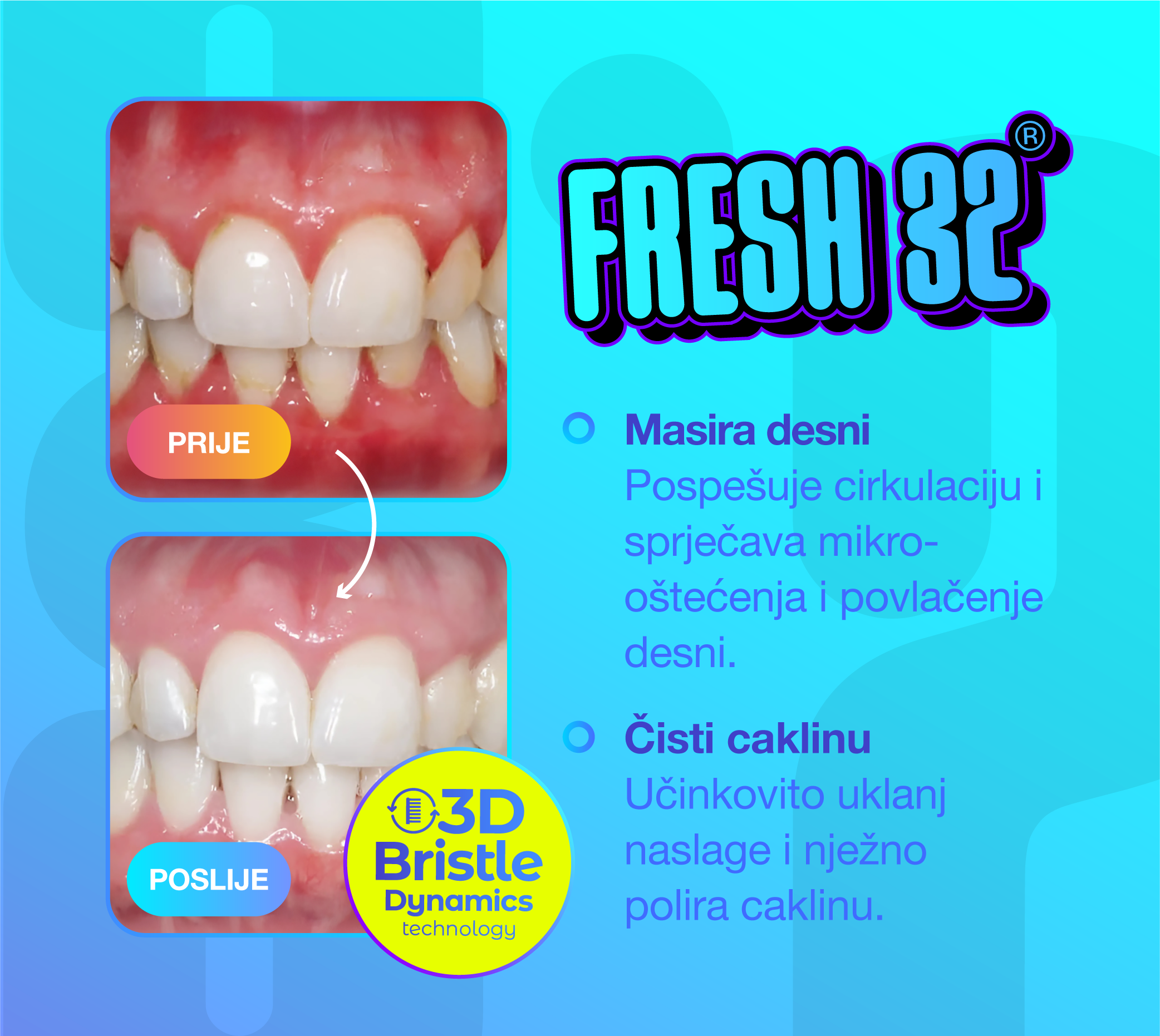 Za razliku od najlonskih čekinja koje grebu i troše caklinu, TPU čekinje nježno poliraju površinu zuba - ostavljajući glađi i čišći osjećaj nakon svakog četkanja.