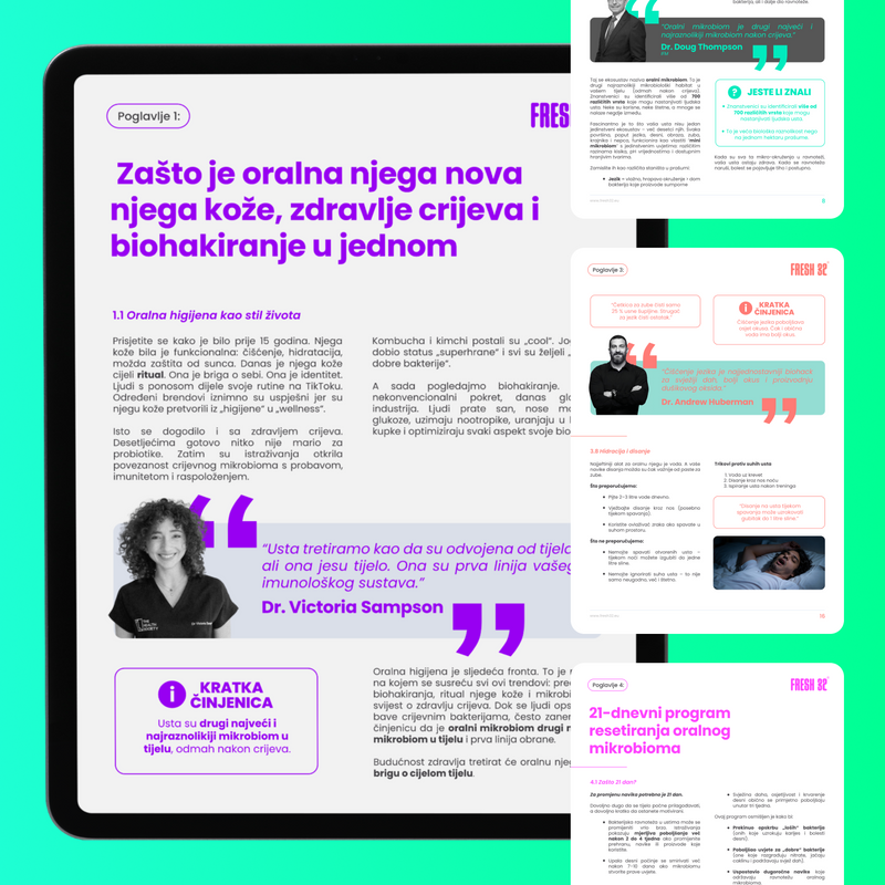 Ne. Vodič funkcionira i s proizvodima koje već koristiš. Predložene zamjene nisu obavezne. No ako želiš dodatno unaprijediti svoju rutinu, FRESH 32 proizvodi razvijeni su prema istim načelima kao i vodič. Podržavaju ravnotežu, štite slinu i izbjegavaju oštre, agresivne pristupe. Tako iz svoje svakodnevne njege možeš izvući još više.